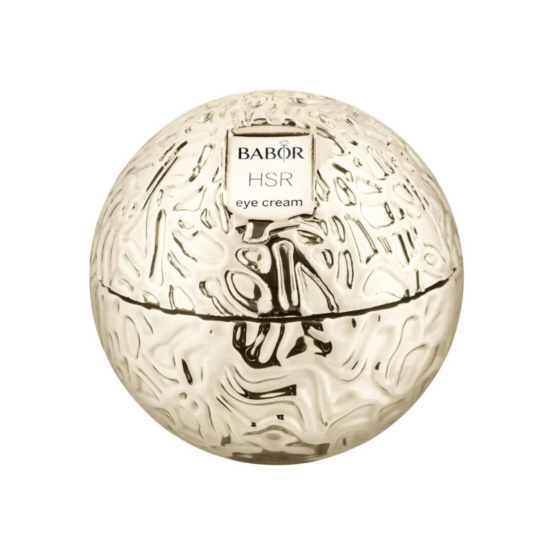 The gentle, intensely nourishing HSR anti-wrinkle eye cream texture is presented in the iconic golden HSR ball-shaped, gold-covered packaging, making daily use a true luxury.