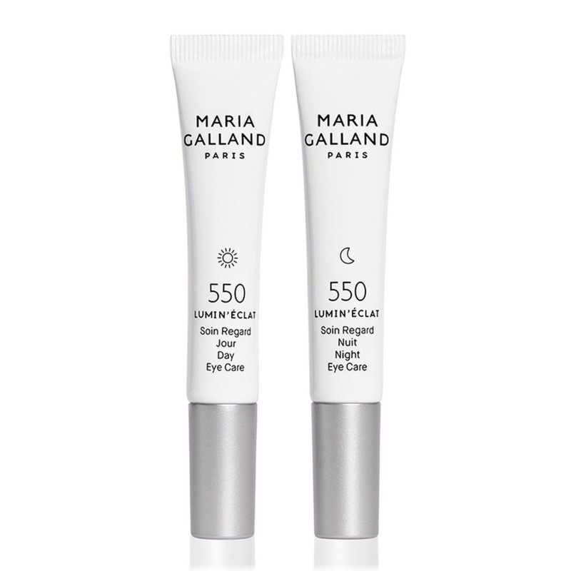 Maria Galland LUMIN’ÉCLAT day and night eye care duo is a two-cream system adapted for eye skin care according to the skin's natural needs during the day and night. The day formula provides radiance and helps reduce signs of fatigue, while the night formula intensely nourishes and maintains the skin's moisture balance. Peptides help reduce the appearance of wrinkles, moisturize, and support skin smoothness. Grape stem cell extract helps protect the skin from external factors. Four-molecule hyaluronic acid intensely moisturizes and provides elasticity. Macadamia nut oil and shea butter nourish, soothe, and soften the skin.